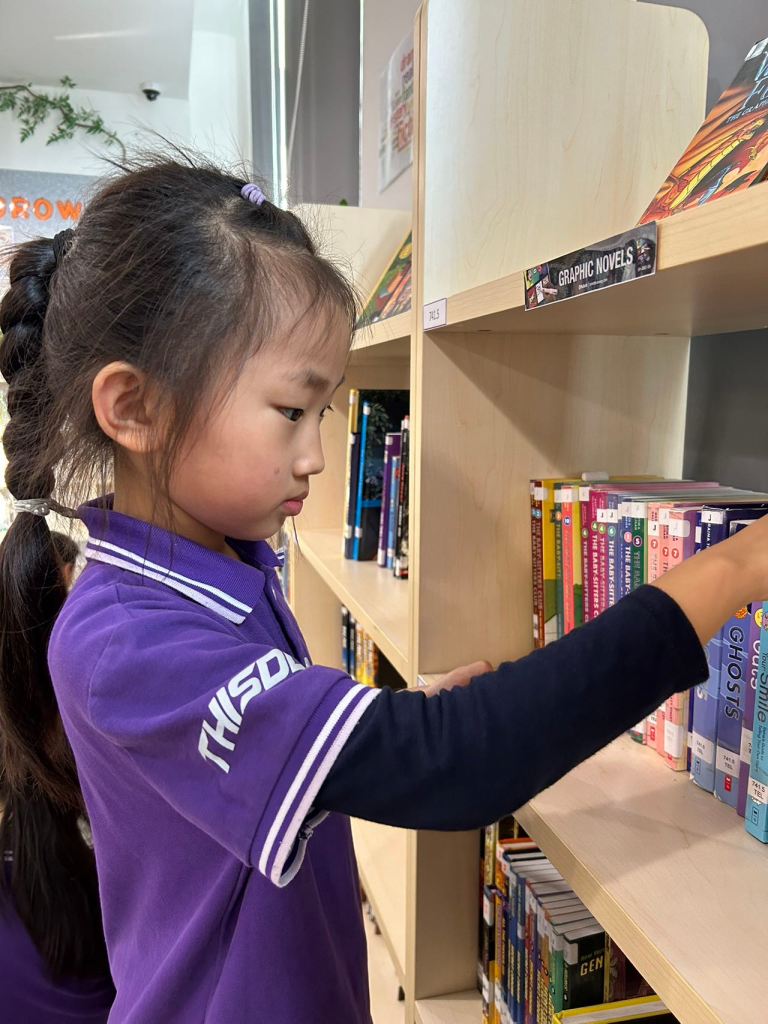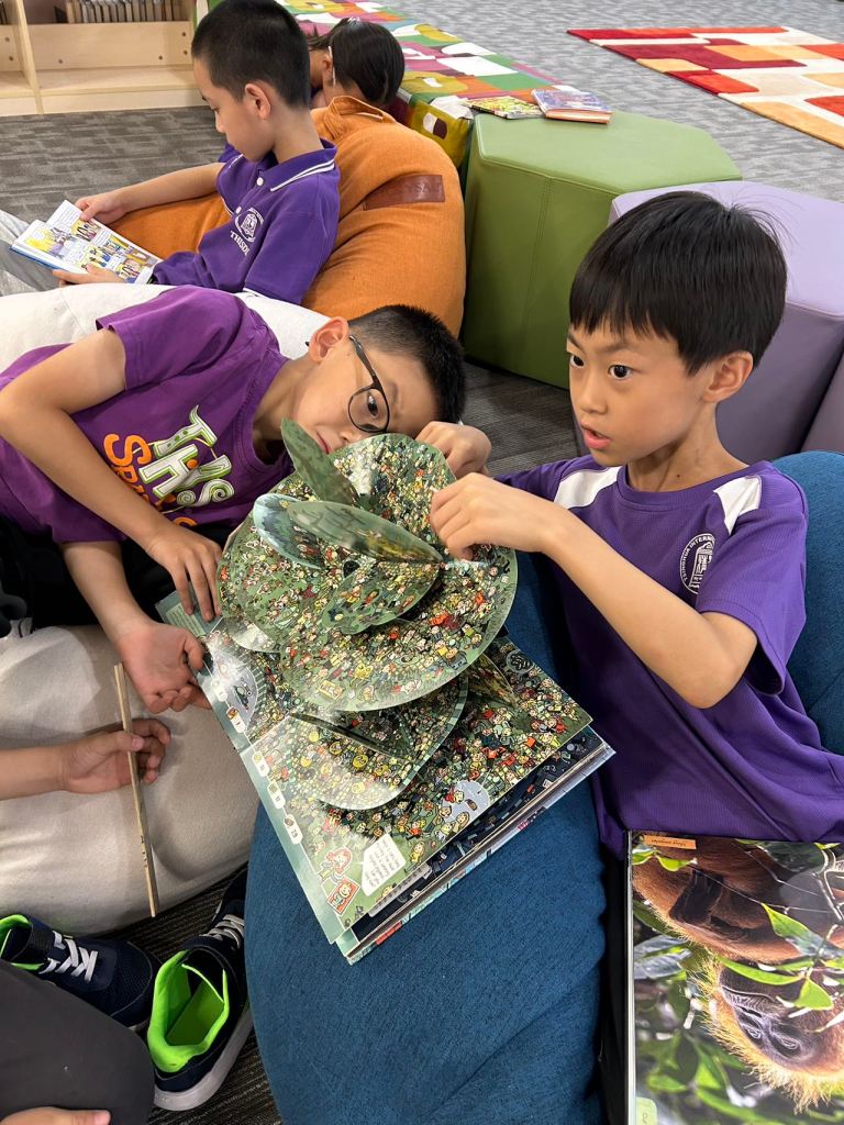 一年级和二年级学生在图书馆故事时间共读了他们的第一本非小说类书籍! 在索菲亚·斯宾塞的《喜欢昆虫的索菲亚》中,作者讲述了她自己作为一个喜欢昆虫的女孩的成长经历。 有些人认为喜欢昆虫很奇怪,有些人认为虫子很可怕。 昆虫很让人着迷, 从蚂蚁到蝴蝶,索菲亚告诉我们,喜爱虫子也是可以的! 图书馆雷老师还向学生们讲授杜威十进制图书分类系统,杜威十进制系统是我们在图书馆组织非小说类书籍的方式,同学们可以根据书脊上数字找到自己感兴趣的阅读主题。