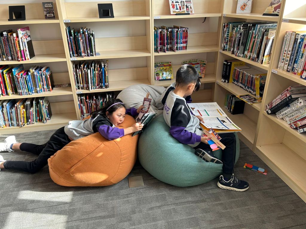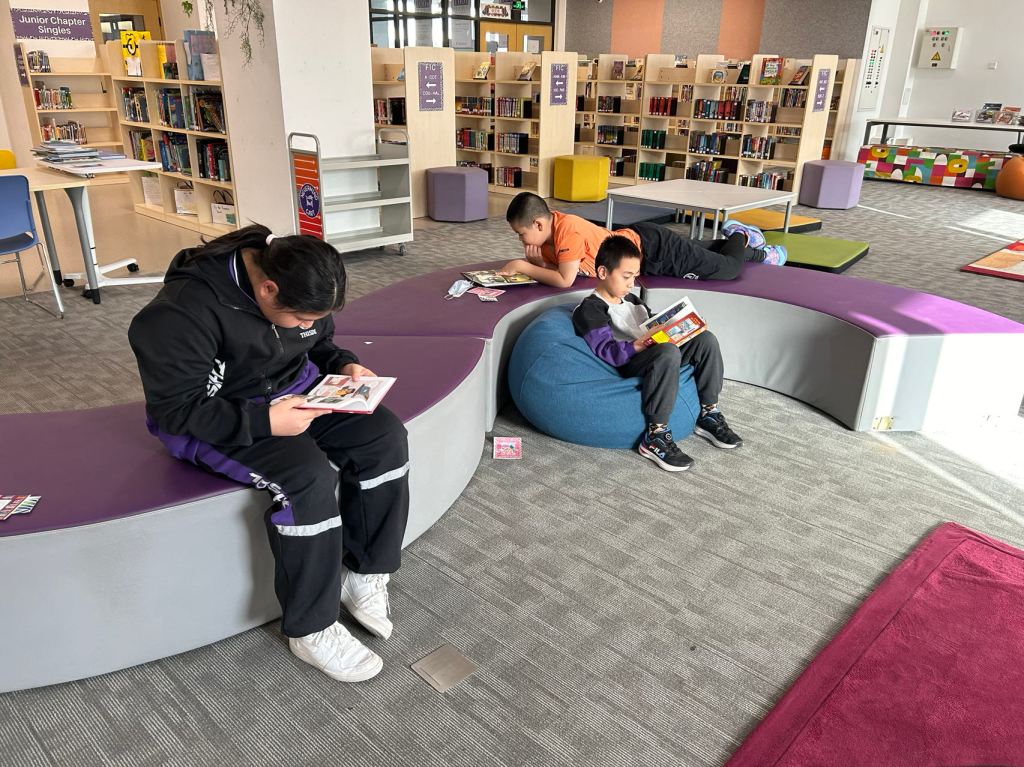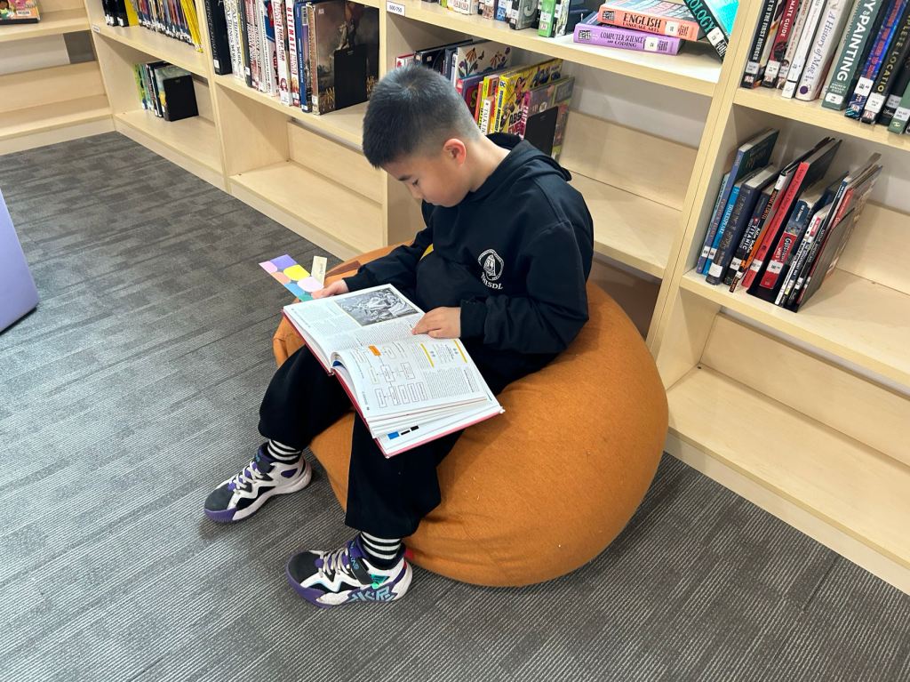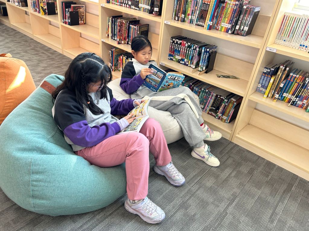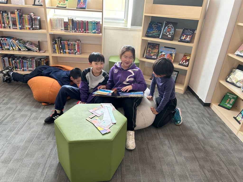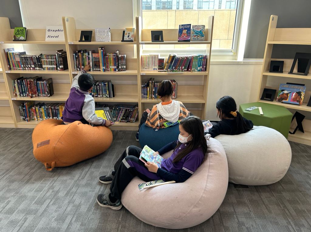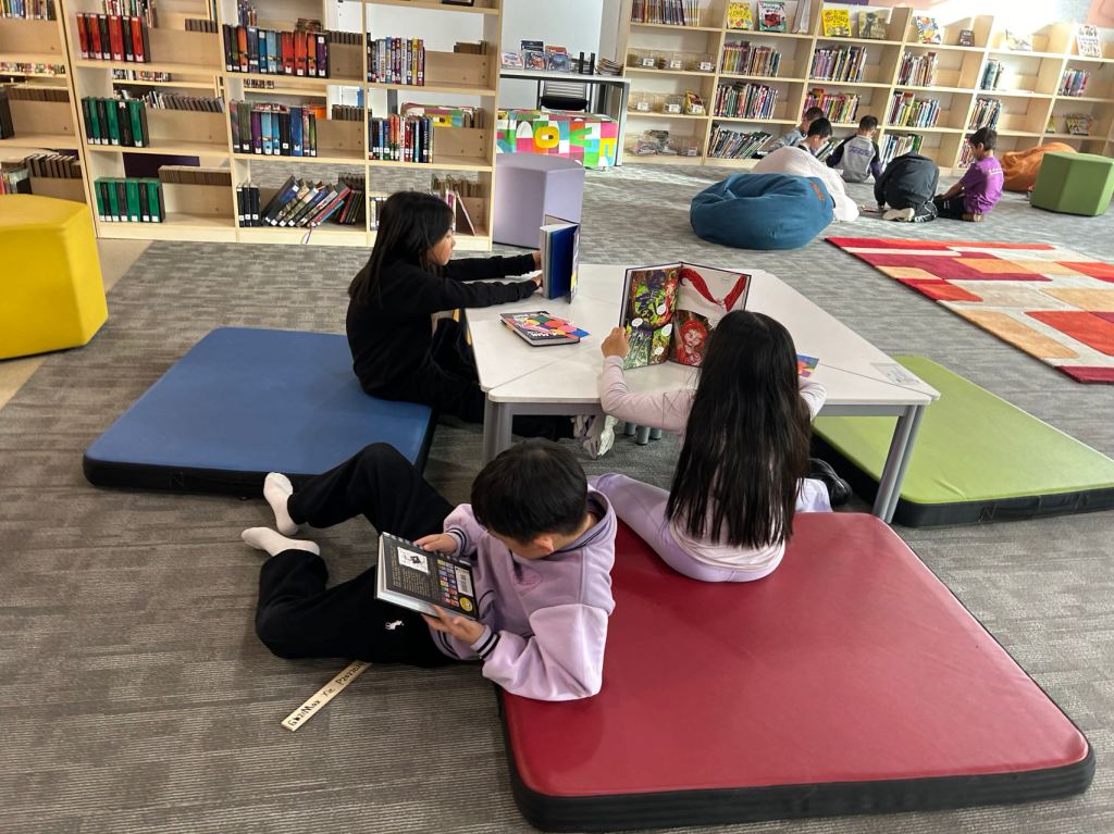 We have some new decorations for our shelves! Now our new books will be proudly displayed on our sparkly New Book Shelf so students can always see what books have recently arrived at the library. We have also introduced the Nevermind Cart, which students can use if they decide to put a book back but don’t know where it goes on the shelf.