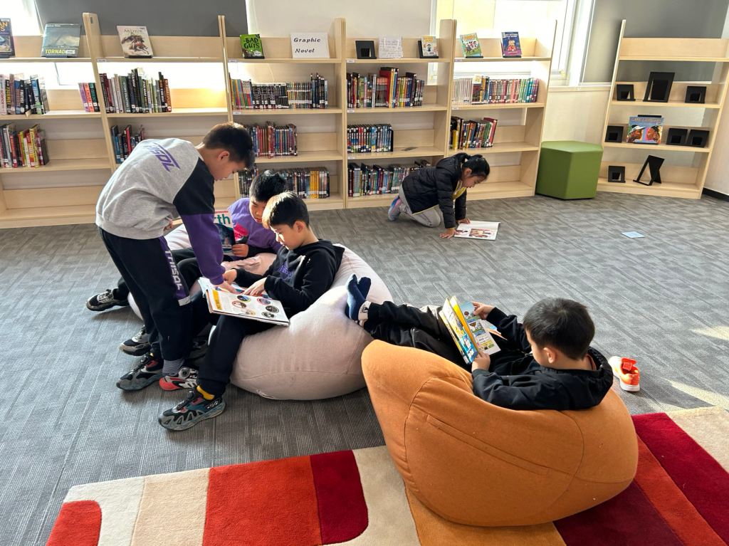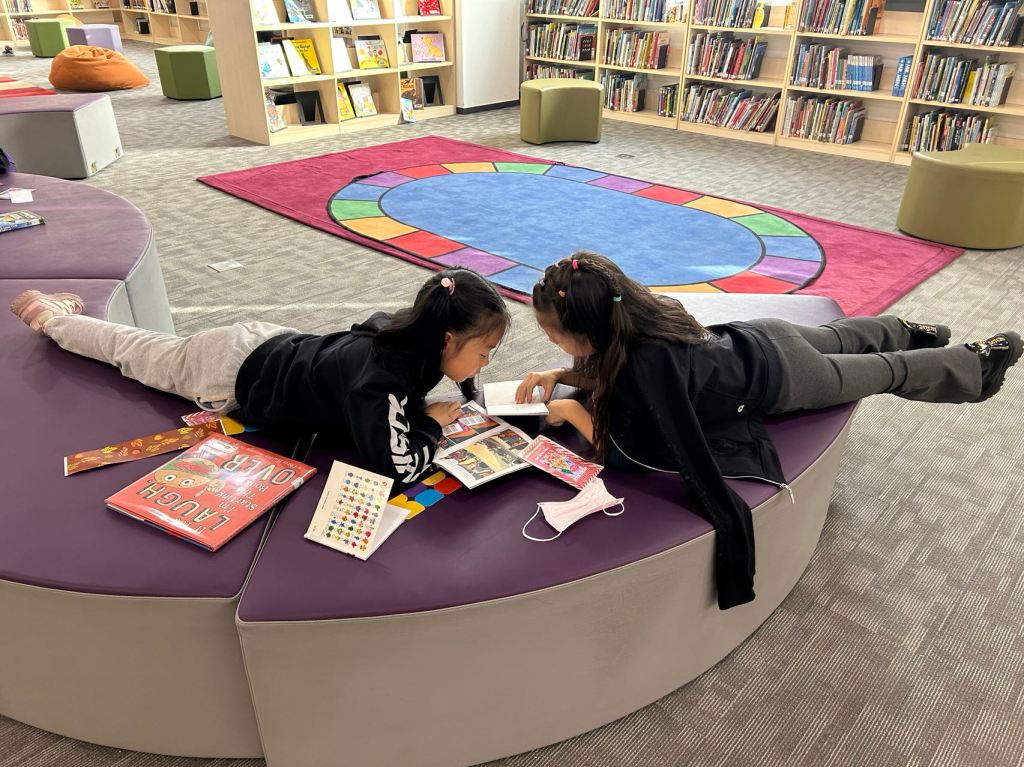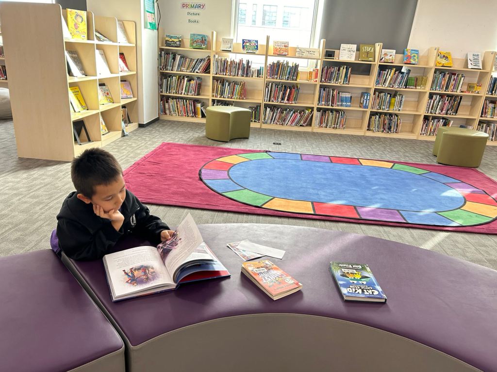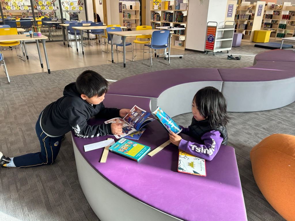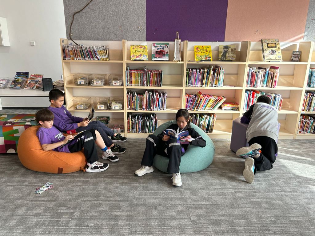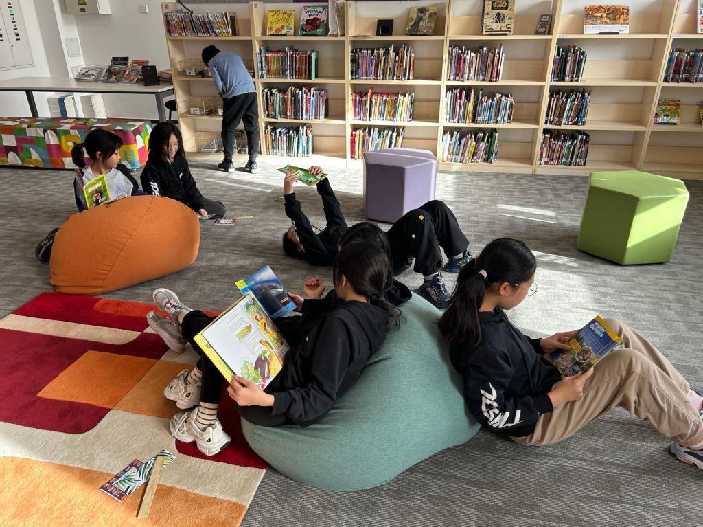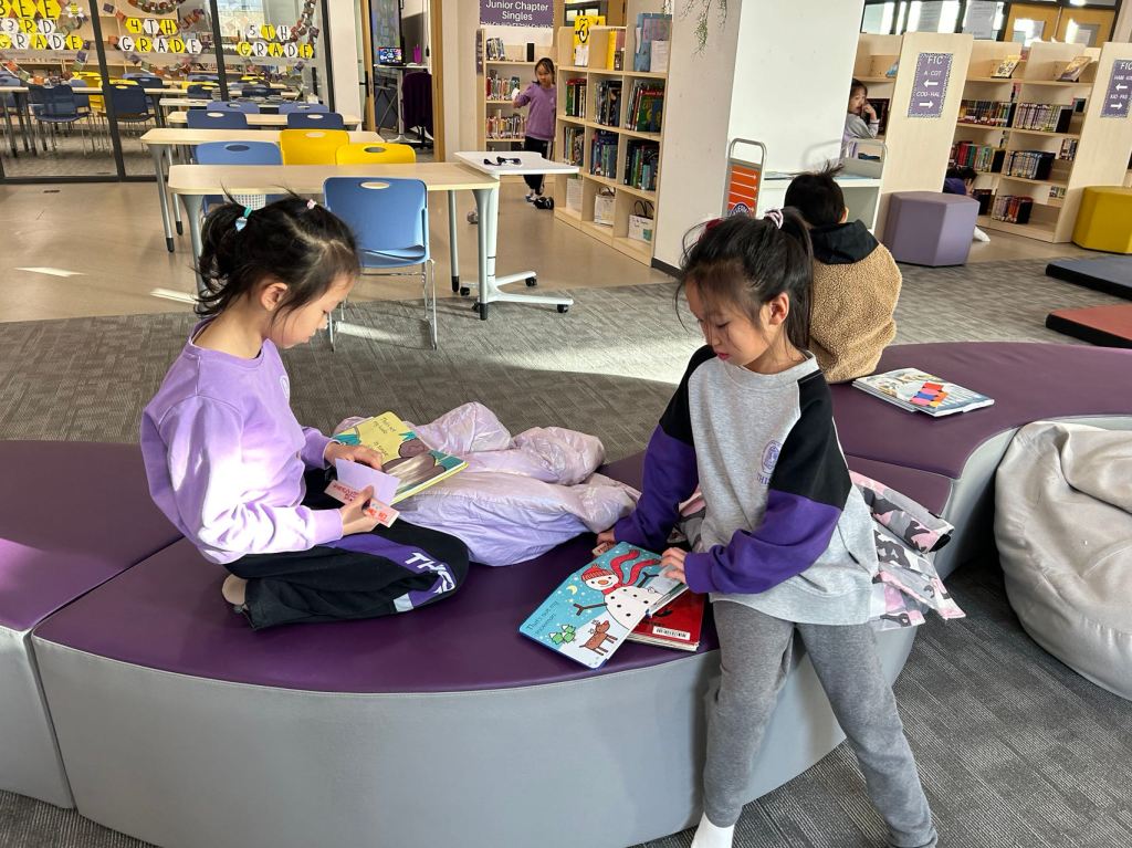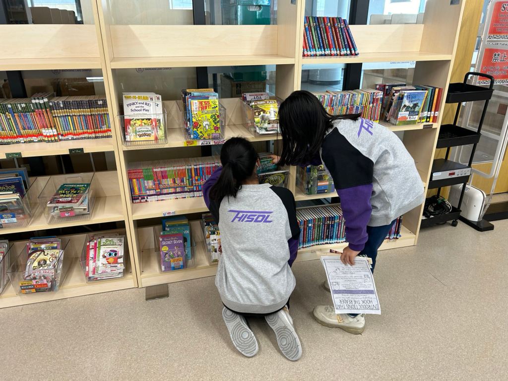 We have some new decorations for our shelves! Now our new books will be proudly displayed on our sparkly New Book Shelf so students can always see what books have recently arrived at the library. We have also introduced the Nevermind Cart, which students can use if they decide to put a book back but don’t know where it goes on the shelf.