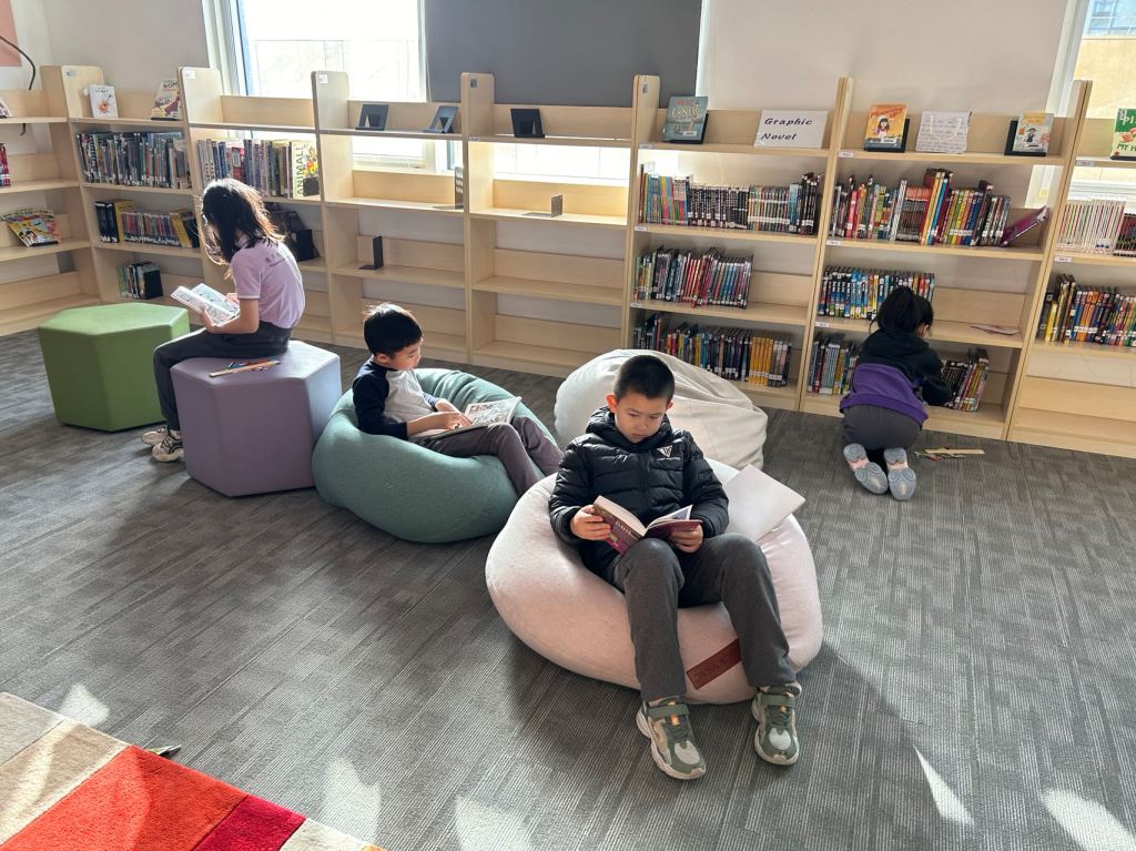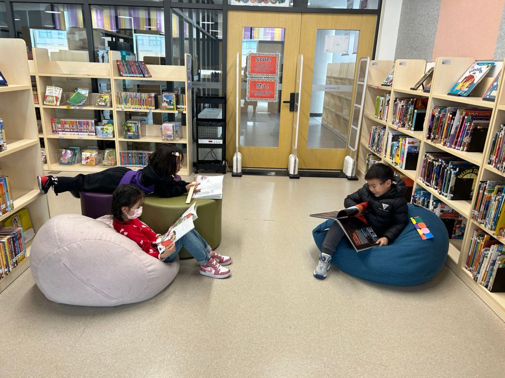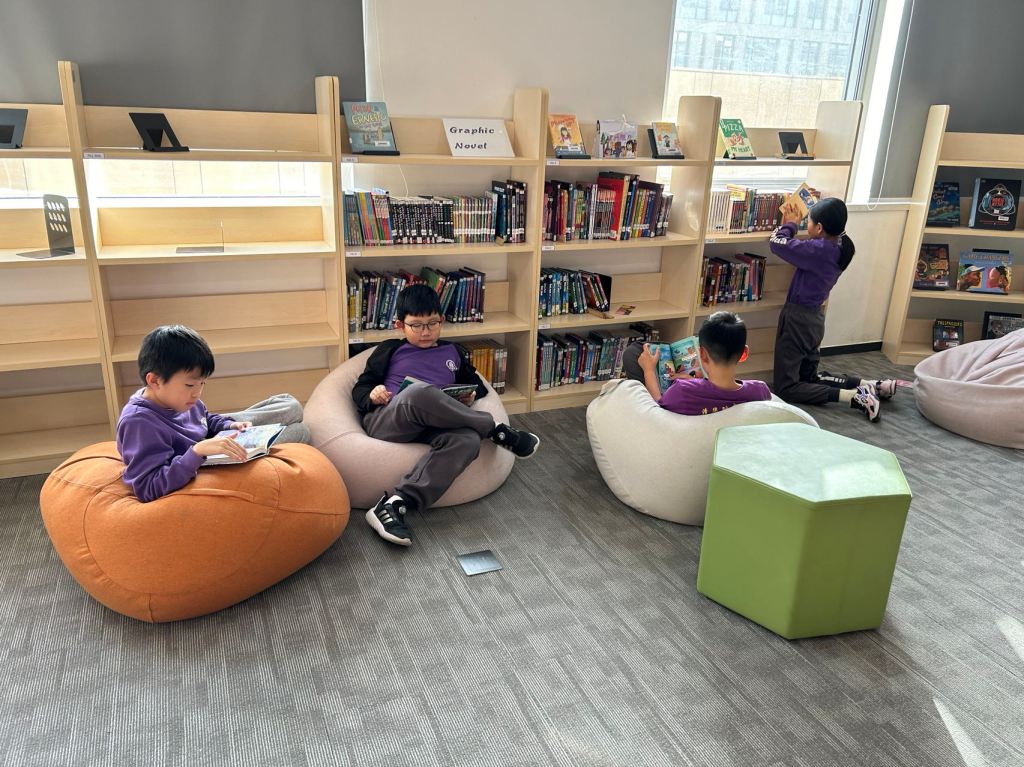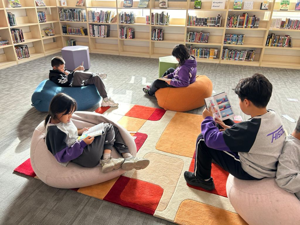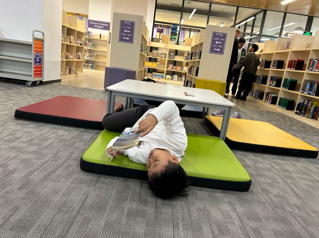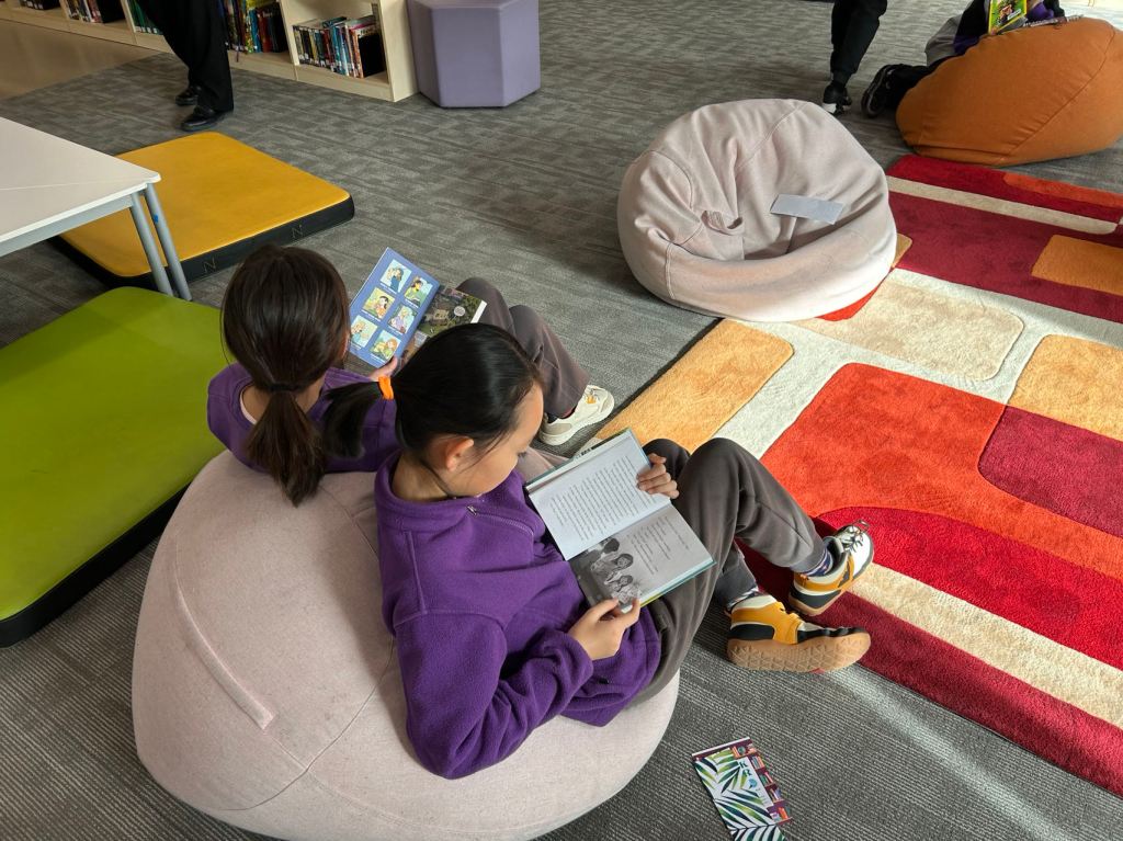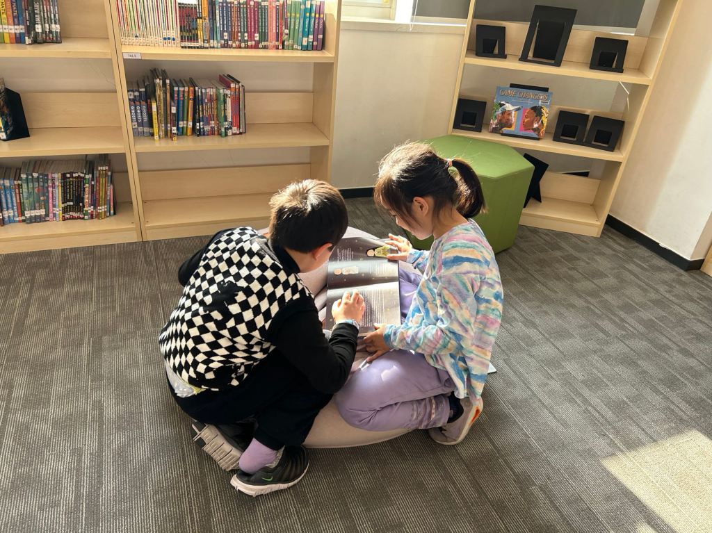 We have some new decorations for our shelves! Now our new books will be proudly displayed on our sparkly New Book Shelf so students can always see what books have recently arrived at the library. We have also introduced the Nevermind Cart, which students can use if they decide to put a book back but don’t know where it goes on the shelf.