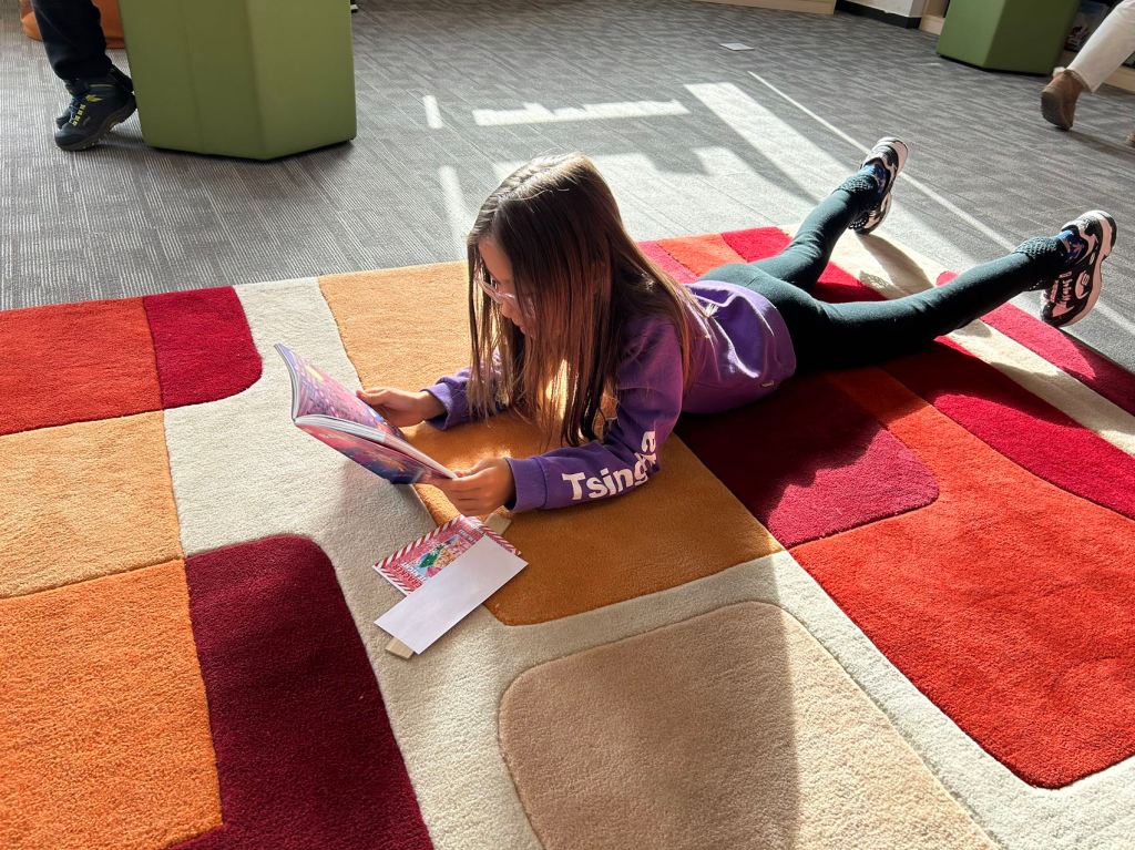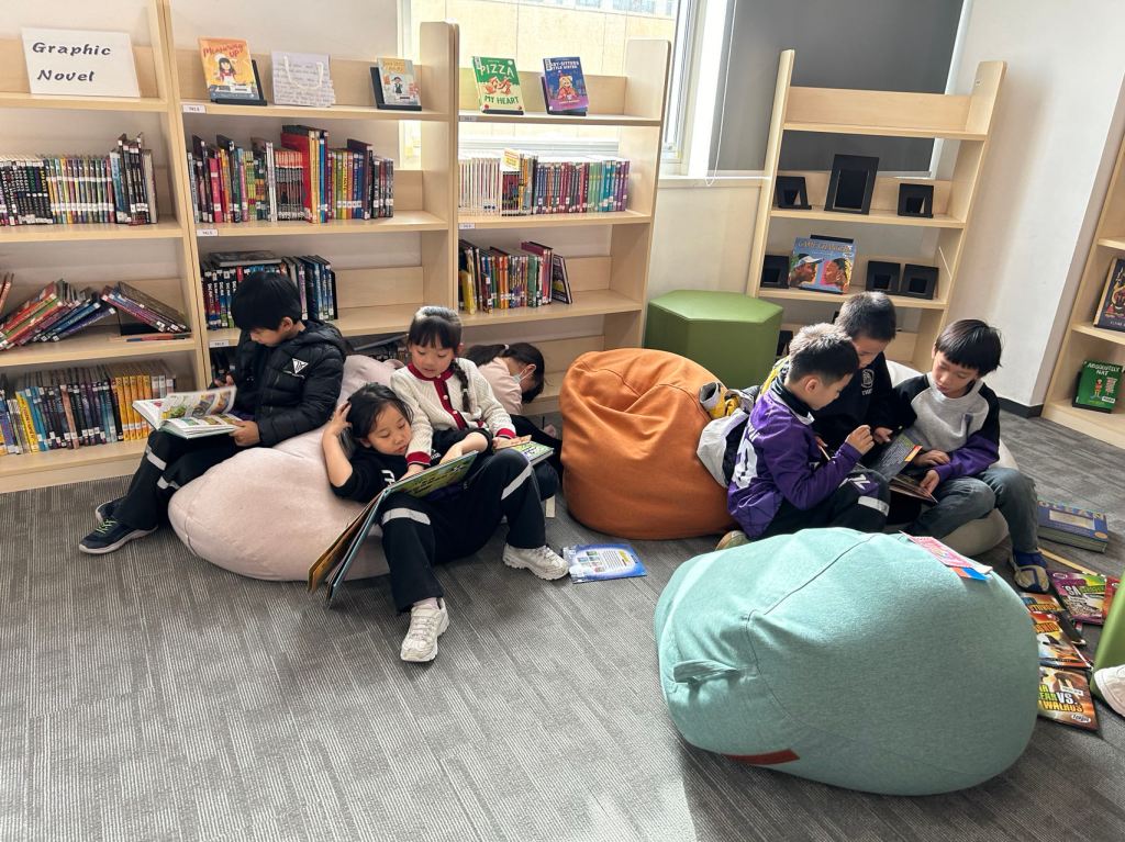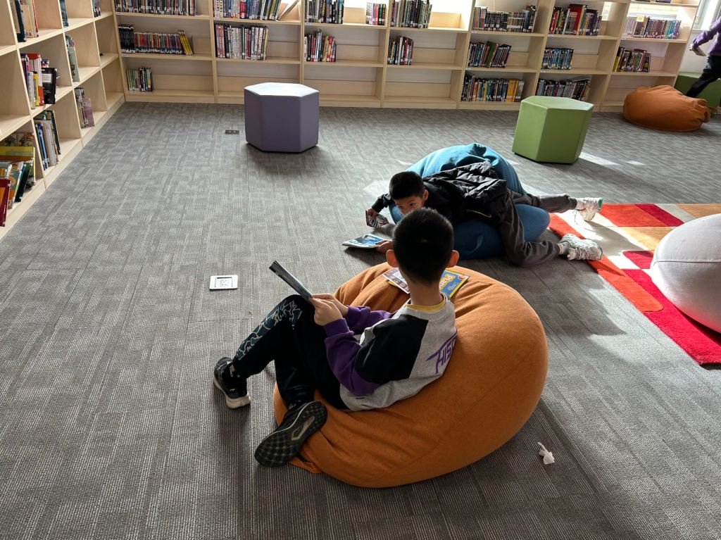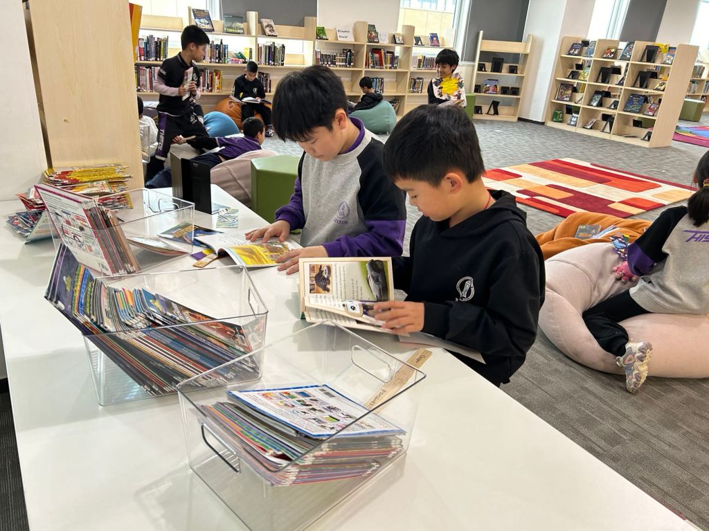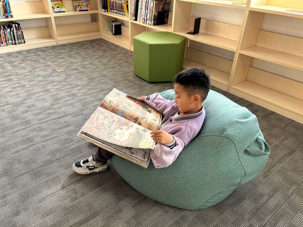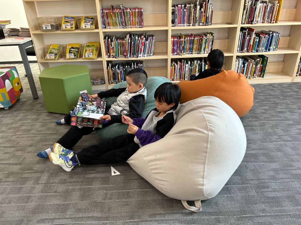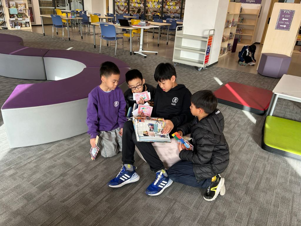 We have some new decorations for our shelves! Now our new books will be proudly displayed on our sparkly New Book Shelf so students can always see what books have recently arrived at the library. We have also introduced the Nevermind Cart, which students can use if they decide to put a book back but don’t know where it goes on the shelf.