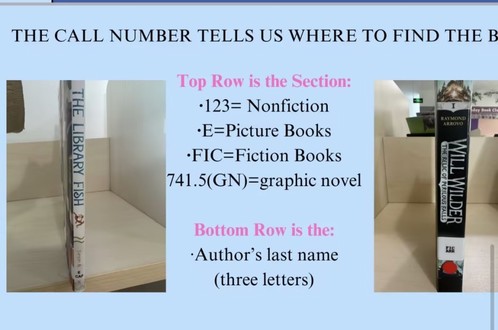 Our younger primary students learned the important lesson of our library classification system! Ms. Ray created a game to help students read the call number of our library books and be able to find what they’re looking for on the shelves.