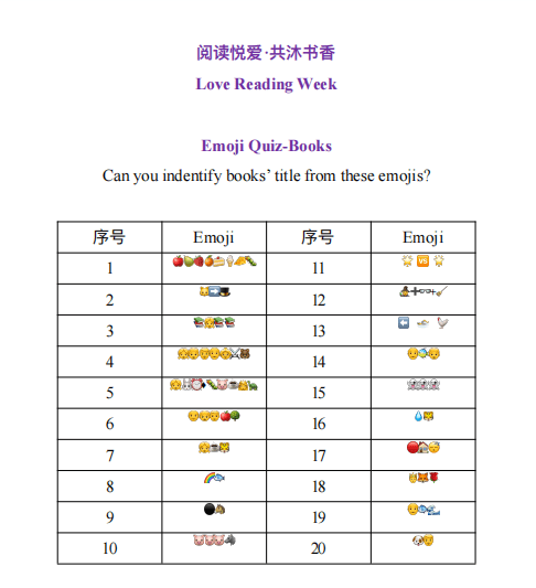 我们以折书艺术和读书游戏结束了爱读书周。董老师打印了不同的图案,让学生们按照图案进行创作;芮老师则制作了一个拼图,让学生们从一系列表情符号中猜出书名。为本周画上了圆满的句号!