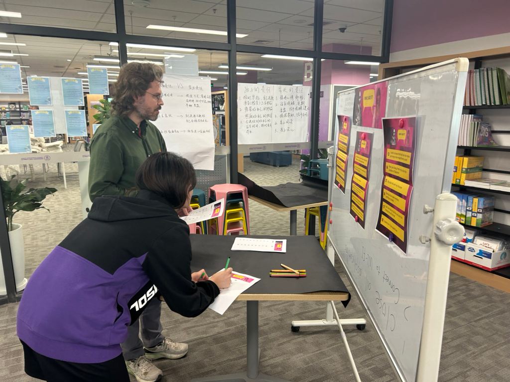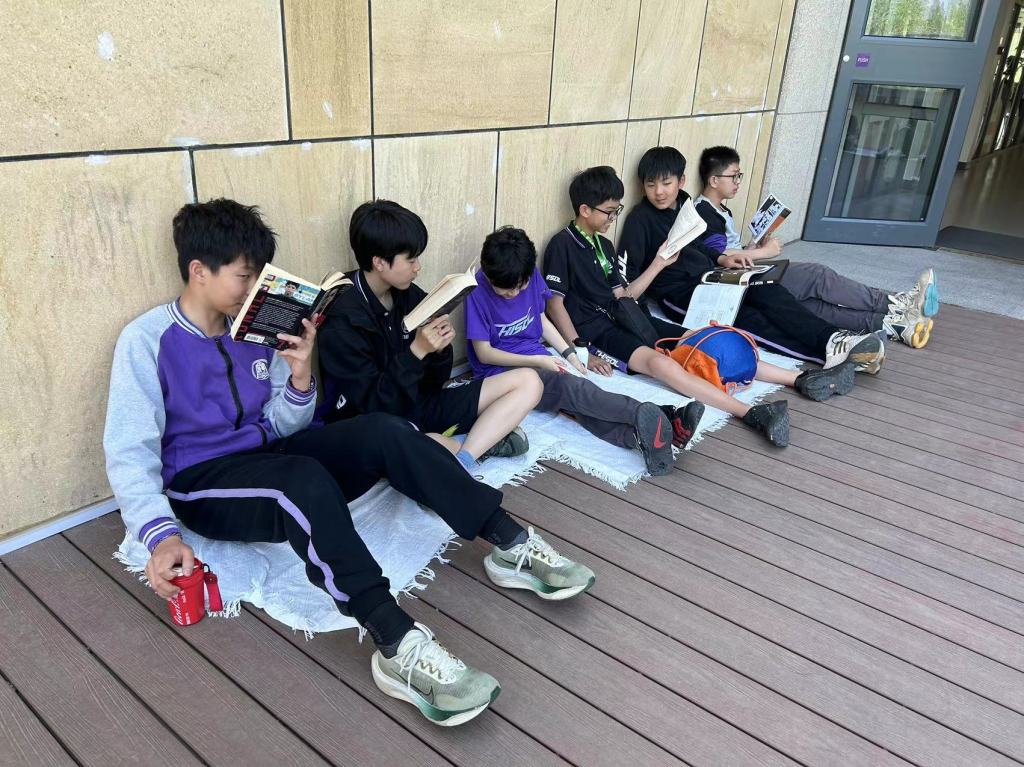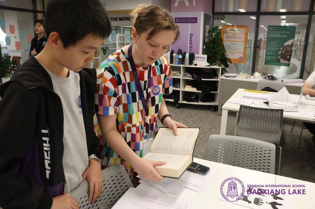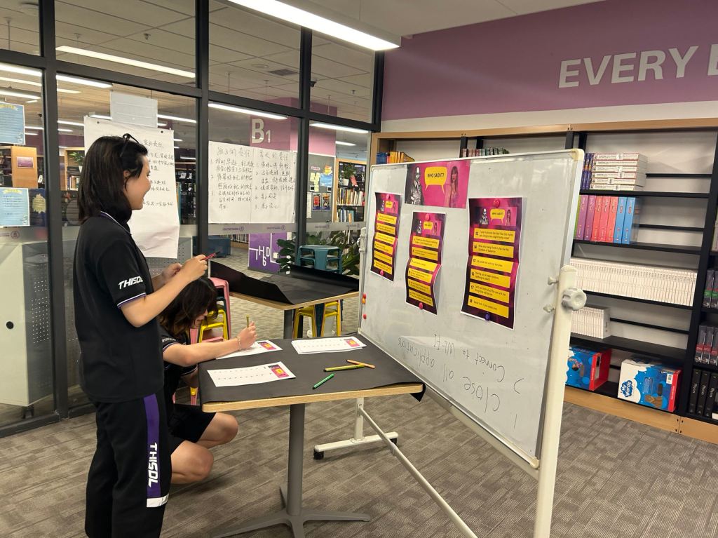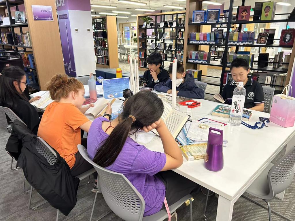 为了促进高年级学生对阅读的热爱,董老师安排了初中和高中英语课程的图书馆课程。这是一次特别的 “图书速配 “活动,在一堂课的时间内向学生介绍了几十本书。学生们被要求花一些时间看完所有的书,两分钟读完一本书,然后做笔记并给自己读过的书打分。课堂结束时,希望每个人都能找到一本适合在爱读书周阅读的好书!其他班级可以休息一下,在户外野餐毯上阅读。