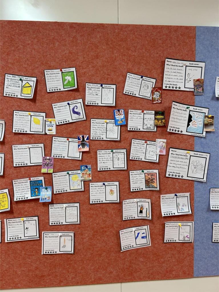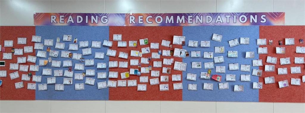 1-12 年级的学生们齐心协力,帮助我们制作了 “热爱阅读周走廊”。走廊上的展品包括阅读推荐、学生在图书馆的照片、学生制作的图书海报以及今年我们在图书馆课上阅读的所有书籍的封面。