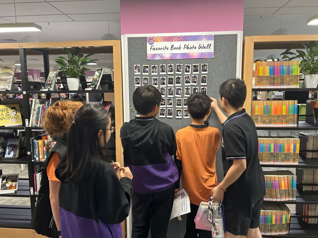 周一的 “最喜爱的图书照片墙 “活动为本周拉开了序幕。学生们可以使用图书馆特制的富士即拍即影相机,与自己喜爱的图书合影,并将照片挂在墙上供大家欣赏。