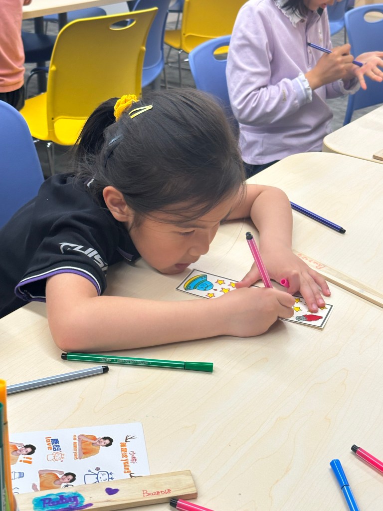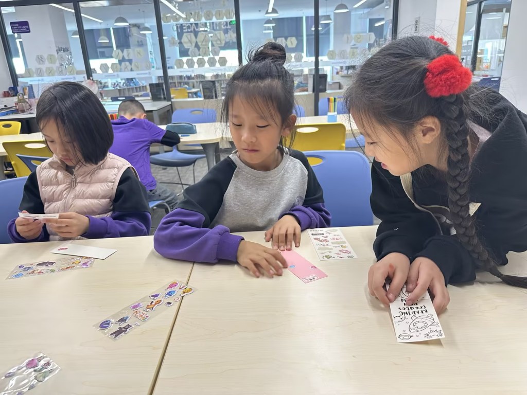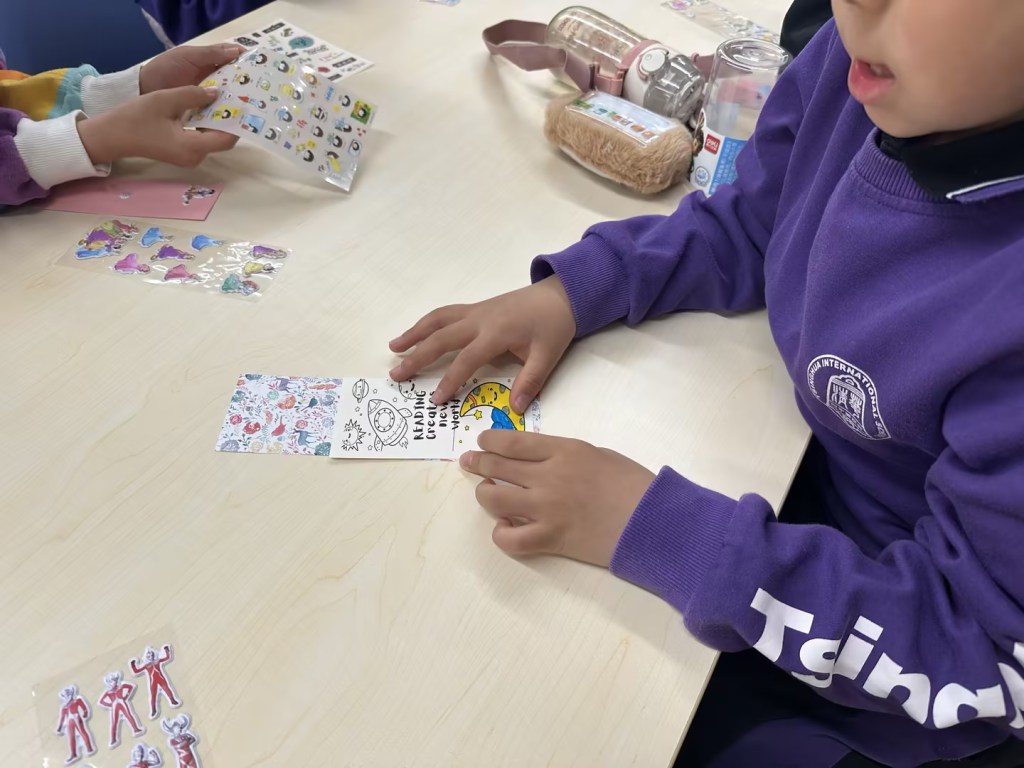 周二,我们的小学生发挥自己的创造力,用彩纸和贴纸制作了书签。