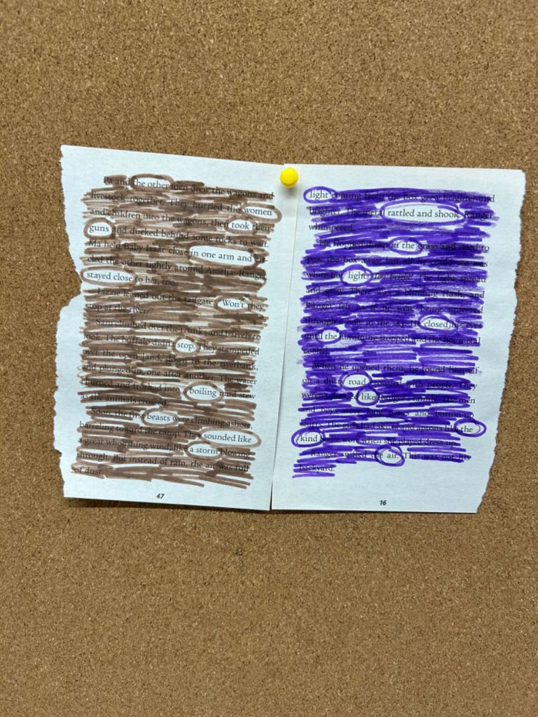 学生们受邀通过写标题诗或黑幕诗来练习诗歌技巧。这些独特的诗歌形式是用旧书页和旧杂志制作而成的,具有全新的内容。