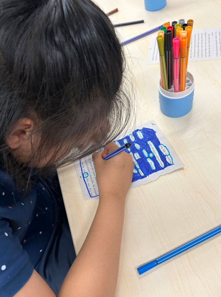 Students were invited to practice their poetry skills by writing headline poetry or blackout poetry. These unique poetry forms are made from old book pages and magazines, resulting in something entirely new.