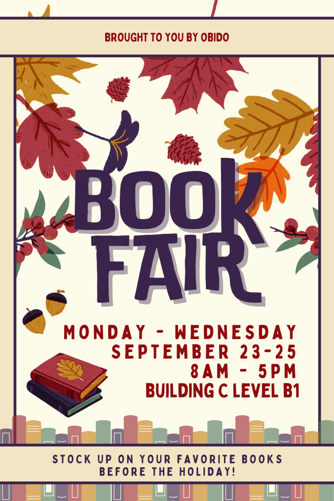 The Fall Book Fair is just around the corner! Get ready to explore a fantastic selection of primary and secondary school books, perfect for cozy reading during the upcoming National Holiday!