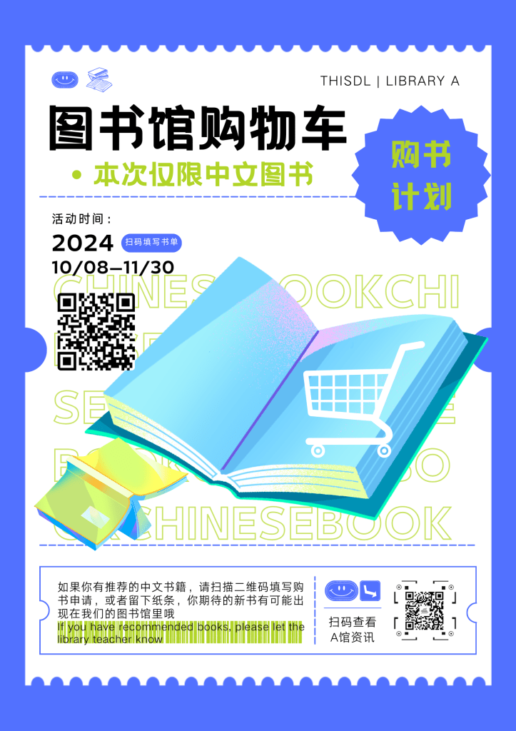 The library is looking to expand its Chinese collection! If you have a suggestion for a book we should buy, write it on one of these posters in Library A or fill our the form from the QR code. We really value your input!