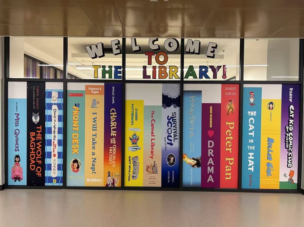 It is with deepest pride and greatest pleasure that we introduce the new book mural of Library C! The librarians helped choose the books and the wonderfully talented Ms. Cai designed the art. Thank you to the THISDL print shop for helping make our library beautiful! If you’re interested in reading any of the books in the mural, be sure to ask a librarian and we would be happy to find it for you.