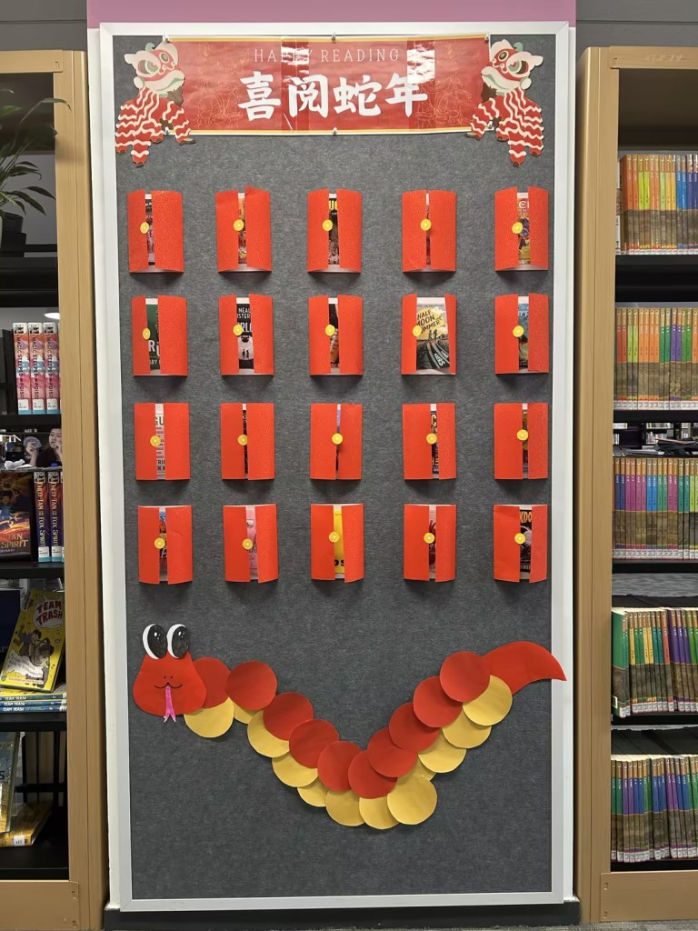 There are twenty lucky envelopes waiting for you to open them! What is inside?! Find this Spring Festival display near the Panda Book Award shelf in Library A.