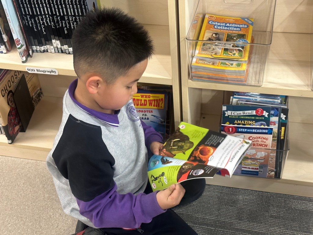 Ms. Ray is reading: Can Cats Swim if They Don’t Like Water? by Madeline King. This book explores feline behavior and instincts, answering curious questions about cats and their relationship with water in an engaging and informative way.