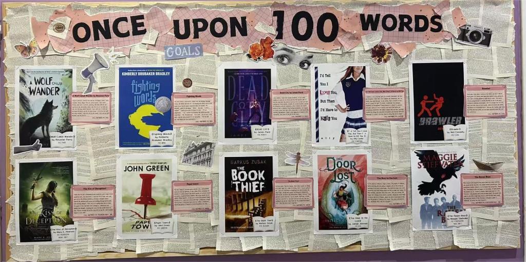 Ms. Claire and Ms. Cai have also set up a new “Once Upon 100 Words” board display in the library hallway next to the library classroom. Come take a look and see if you can be convinced to check out one of these books based on the first 100 words!