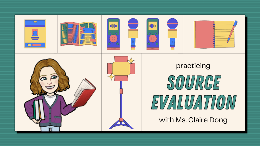 Over at the secondary library, Ms. Claire worked with Ms. Holliday’s G10 students to prepare for their upcoming research papers. On Monday we learned about the databases Britannica and JSTOR and how to use them effectively; then on Monday we practiced source evaluation to make sure we always think critically about the information we find online. Great practice even if you’re not writing a research paper!