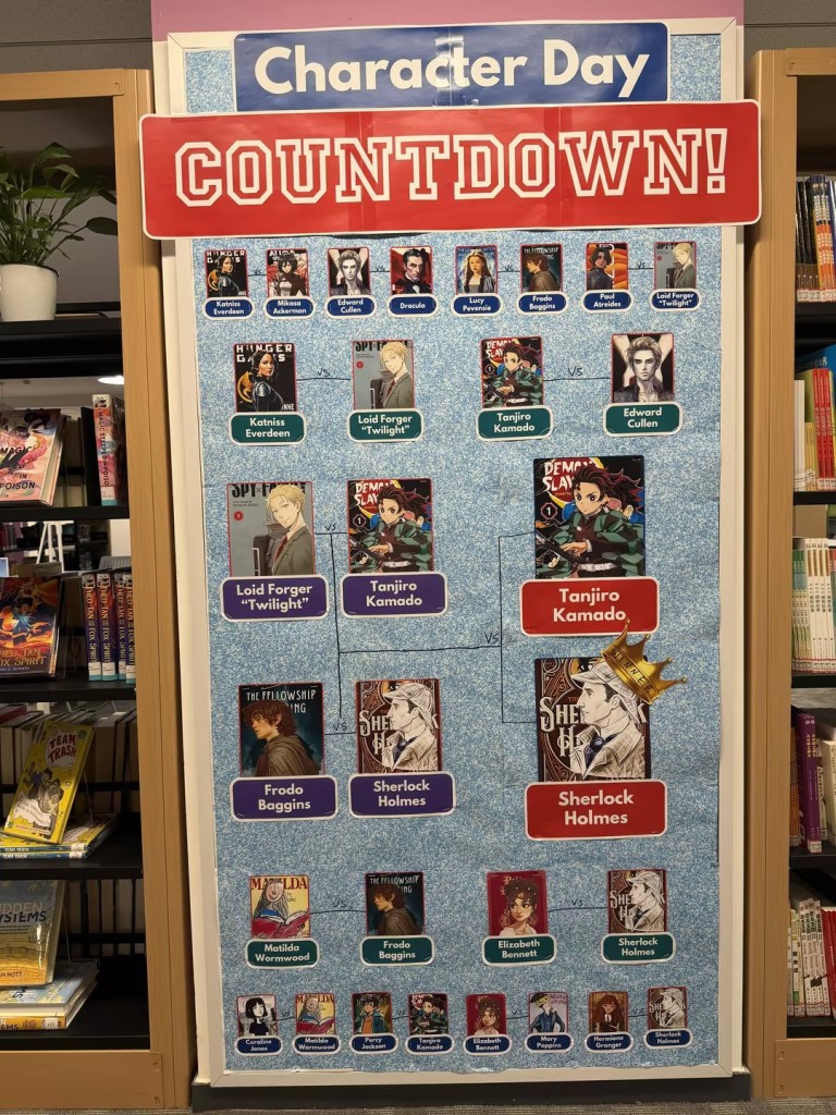 Introducing the Character Day Countdown! A new activity this year, this is a bracket-style voting game. We started with 16 iconic book characters, ranging from distinguished classics to newer icons. Each day, students voted in their homeroom to cut down the character list from 16 to 8, 8 to 4, 4 to 2, and finally to the winner! This year’s winner of the Character Day Countdown was…Sherlock Holmes!