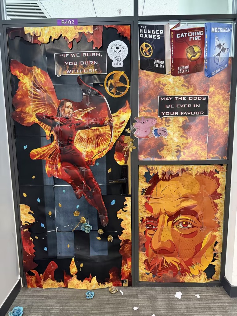 The character decorations don’t stop at the cosplaying! Students also worked with their homerooms to decorate their classroom doors to the theme of a favorite books. From iconic characters like Harry Potter, classics like Alice in Wonderland, and new trends like Wicked, it was great seeing all the beautiful designs!