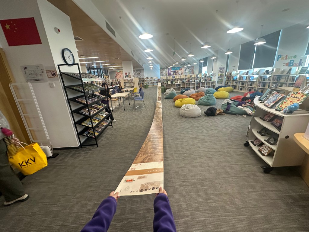 Curious students discovered the loooooongest book in the library this week! And no, not long as in number of pages! When stretched out, this book is several meters long! This interesting book, Along the River During the Qingming Festival is a famous ancient Chinese scroll painting. It vividly shows busy city life, crowded streets, busy rivers, shops, boats, and people of different jobs in the Northern Song Dynasty, reflecting the lively and real social scene at that time.